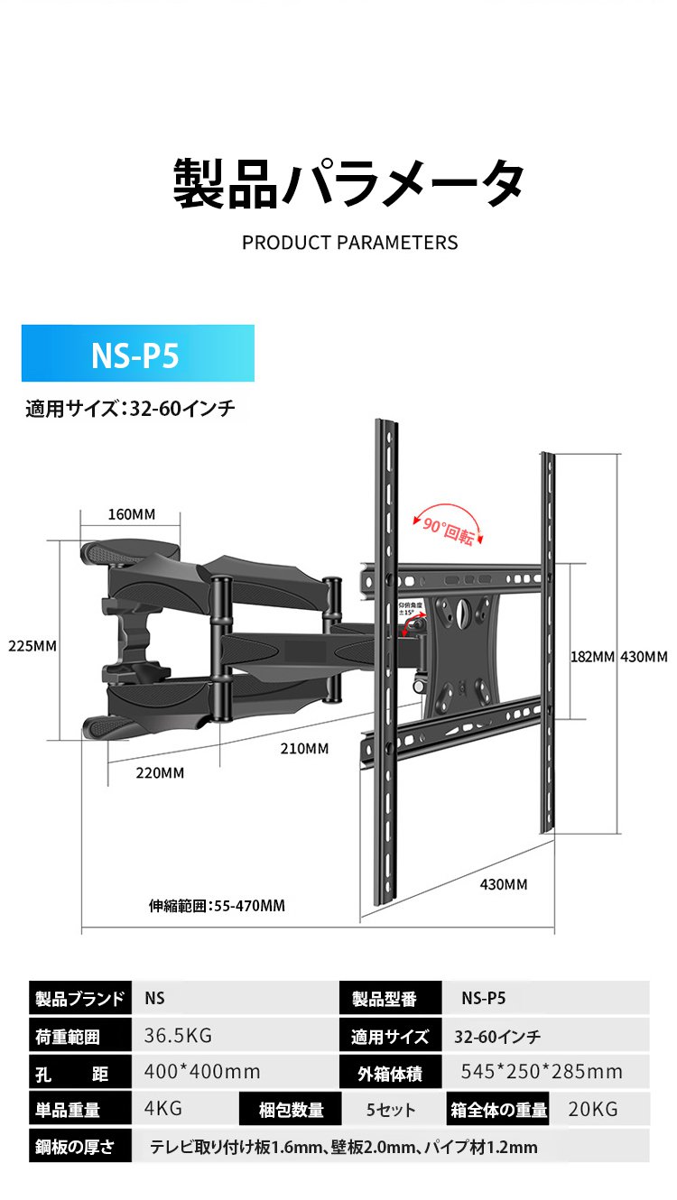 六腕液晶テレビ壁掛けブラケット